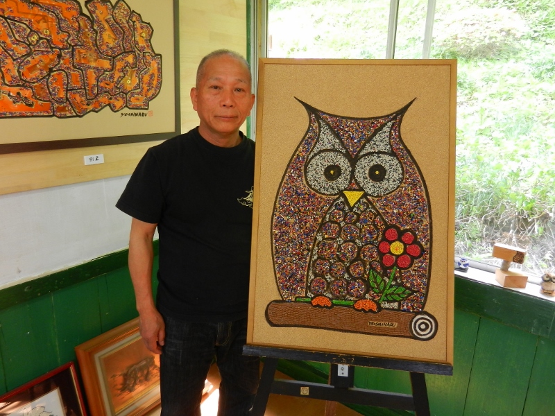 齋藤さんは、定年退職後、東京と下郷町の二地域居住をしています。 廃校になった学校を借りて「アトリエ ボッホ館」と名付け、下郷町で創作活動を開始。工業系廃棄物を使ったリサイクルアートを中心に制作しています。 引っ越してきた頃は地域の人と打ち解けるまで心配していましたが、ご挨拶にと近所に配った自作のフクロウの置物が好評で皆さんが玄関先に飾るようになり、いつのまにか"フクロウ通り"が出来ていたと嬉しそうに語ってくれました。 最初は「定年後に1年だけ充電期間」のつもりで来たのにすっかり気に入ってしまい、はや10年。東京で暮らすご家族も、好きなだけやったほうが良いと背中を押してくれています。現在は、下郷町に多く存在する書や絵画・手工芸のアーティストの方々と展示会を開くのが目標です。