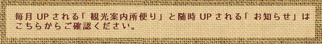 毎月の「イベントカレンダー」と「観光案内所のおススメ」はこちら |