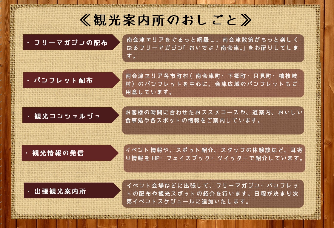 | ■おいでよ!南会津。観光案内所について | |