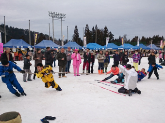 ほかにも、スノーフラッグ選手権や餅つき大会、お宝豆まき、アリスのバルーンショーや、からむし織の体験、雪上綱引き大会、ビンゴゲーム等々、楽しい催し物がたくさんあります。また先着プレゼントとして午前10:00~麹たっぷりの甘酒の無料配布があります。数量限定で無くなり次第終了となりますので、ぜひお早目に会場へお越しください!! 昭和村のキャラクターのかわいい『からむん』も会場で皆さんのお越しをお待ちしていますよ!