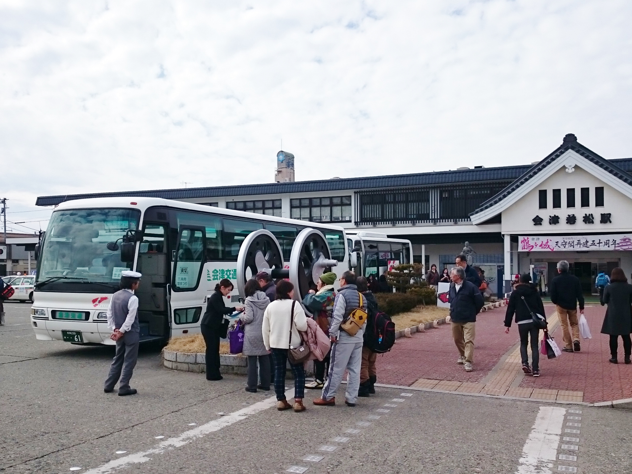 7:20に会津若松駅をはじめ、七日町駅、西若松駅、会津高田駅に集合。この日のスタートはお天気にも恵まれ、青空の下,