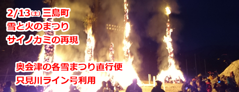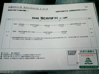 雪道を運転しなくても良くて、500円分のクーポン券が付いて、只見線の乗車体験ができて、お値段1,000円という只見川ライン号。このあと、2/21(日)会津かねやま雪まつり(金山町)、2/28(日)からむし織の里雪まつり(昭和村)の便がありますので、奥会津の雪まつりをぜひ見に行ってください。