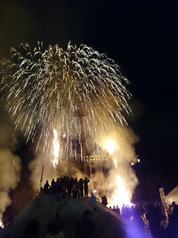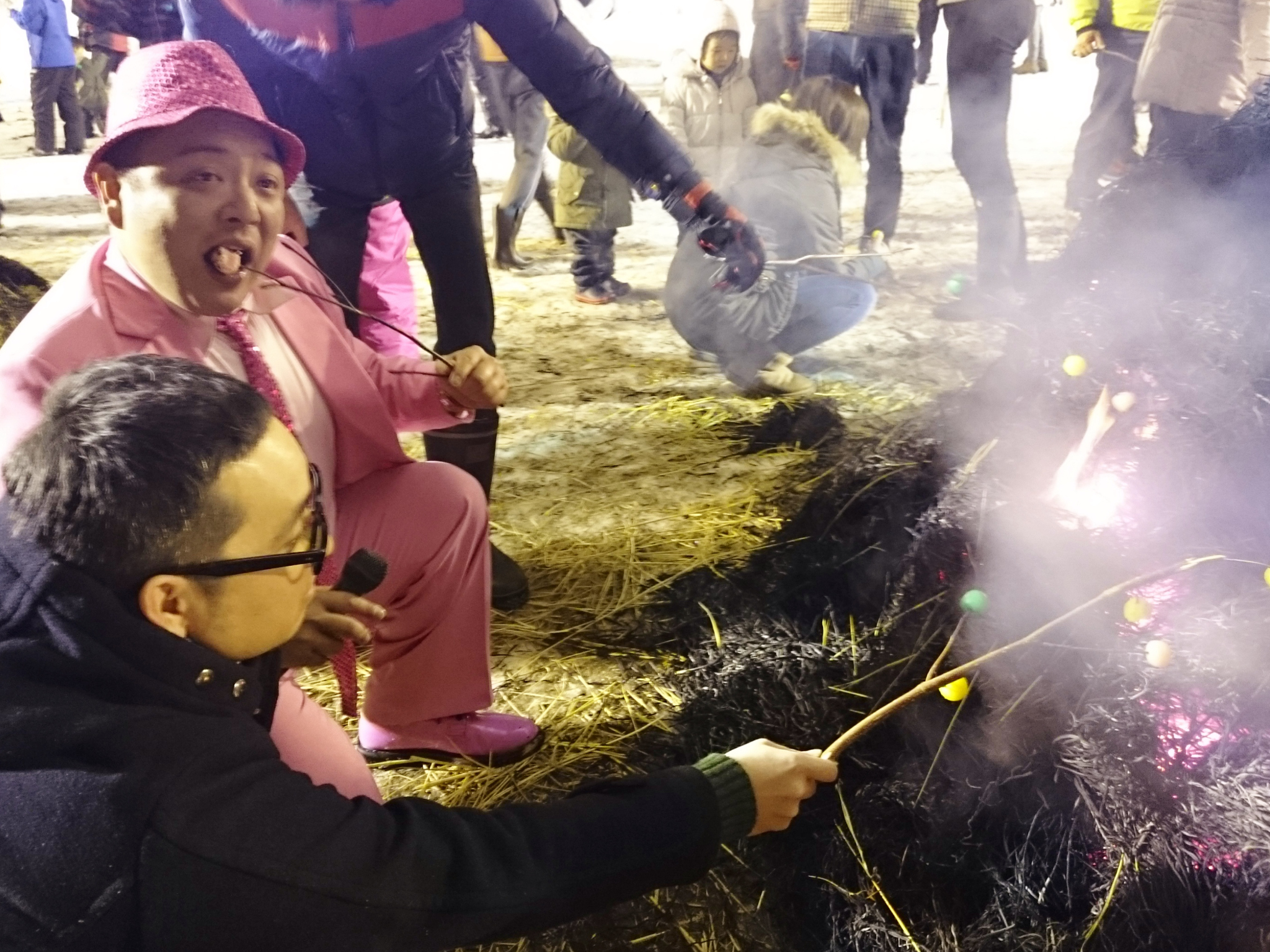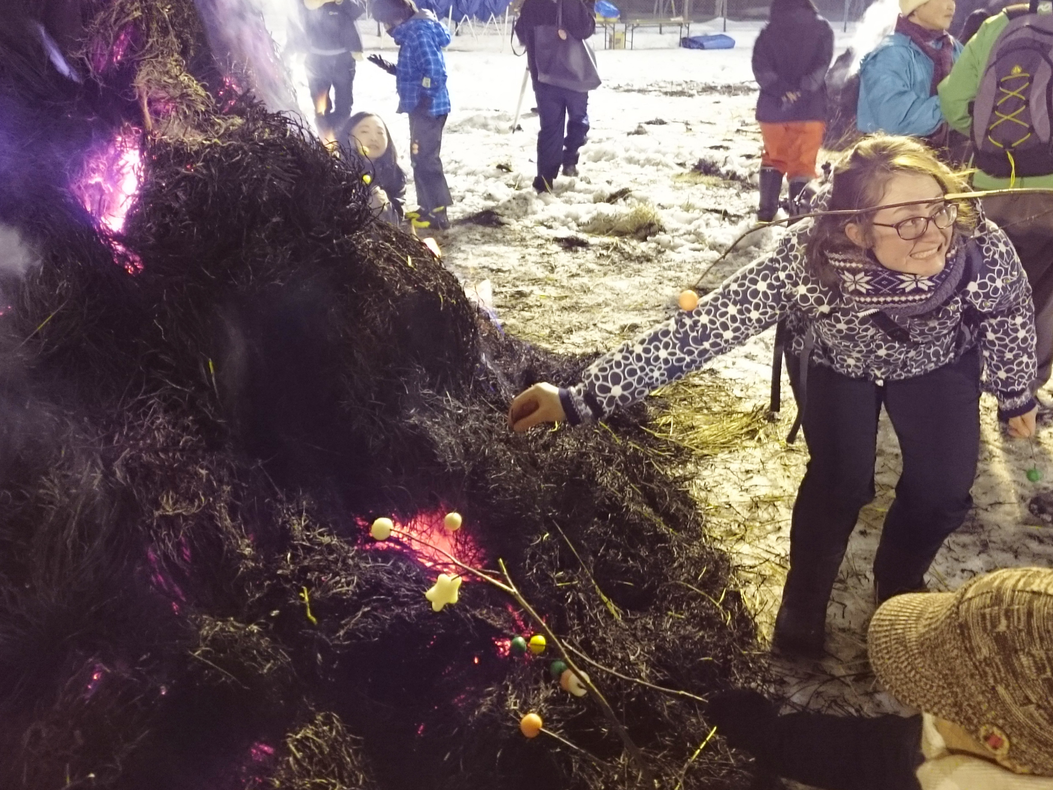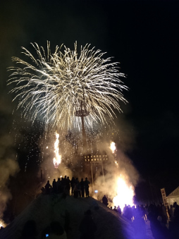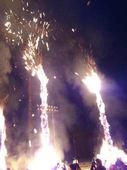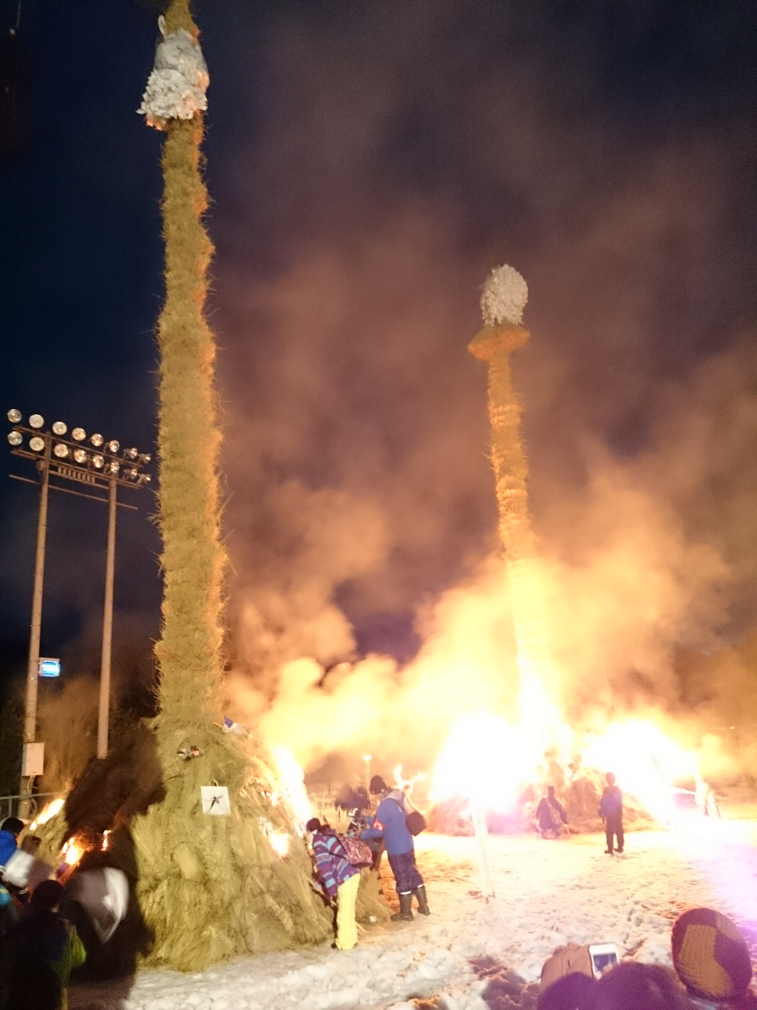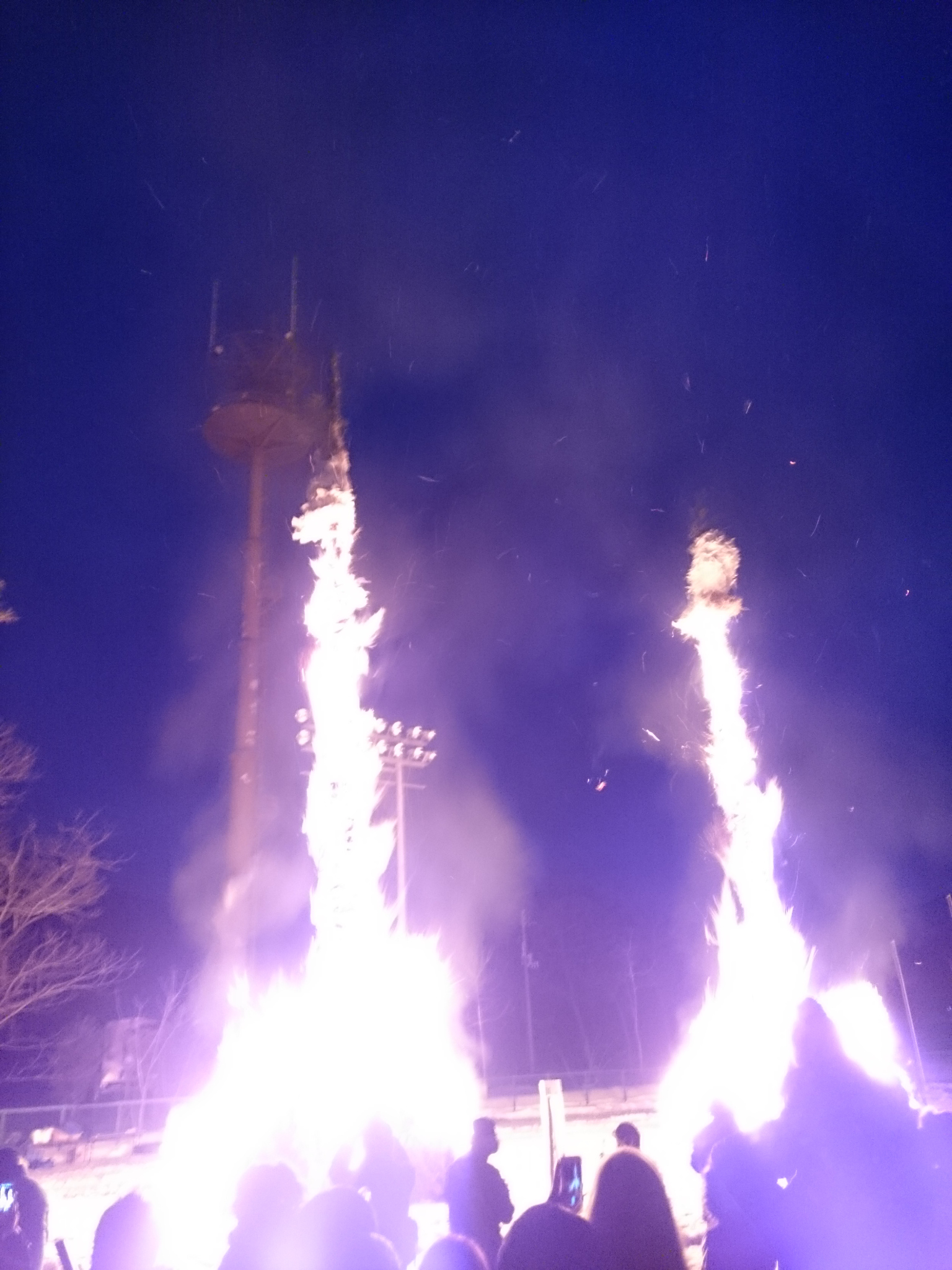 歳の神の周りを行進し、虚空蔵様より御神火をいただき点火、みんなで1年の厄を払いました。