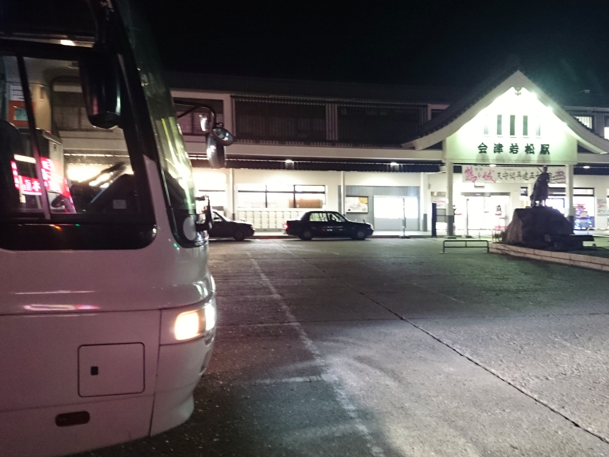 みかんまきが終わって日もとっぷりと暮れた19:30、只見川ライン号は三島町を出発し、20:30過ぎに会津若松駅前に戻ってきました。