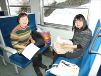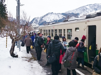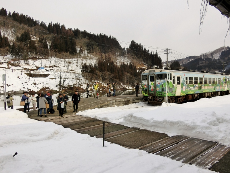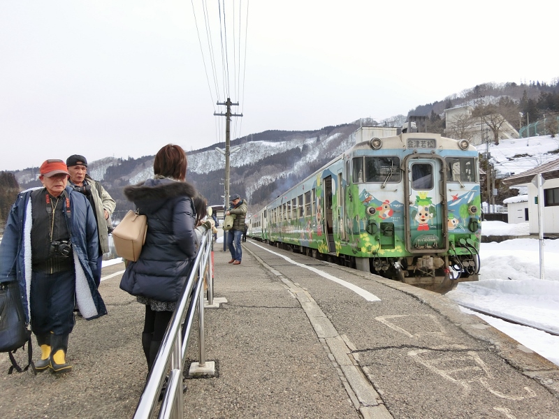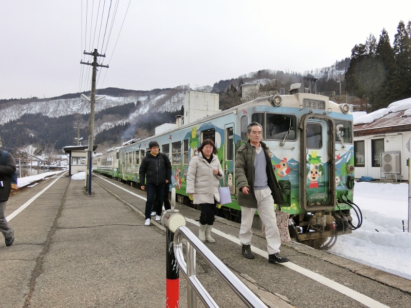奥会津の雪景色を堪能したり、写真を撮影したり、またおしゃべりをしたりしているうちに、終点の会津川口駅に到着しました。