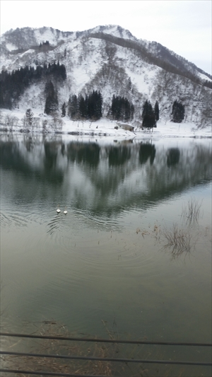「広~い!」只見川にびっくりしてそしてまた只見川に映る風景にも「キレーイ!」 とみなさん感激していました(●^o^●)