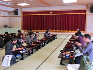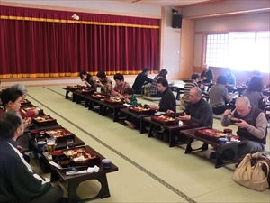 ちょうどお昼時となり、皆さんで昼食を召し上がっていただきました。皆さん初対面の方々ですが、中には話が弾んで楽しそうに会話をしながら昼食を食べていらっしゃいました。お弁当も美味しいと好評でした。