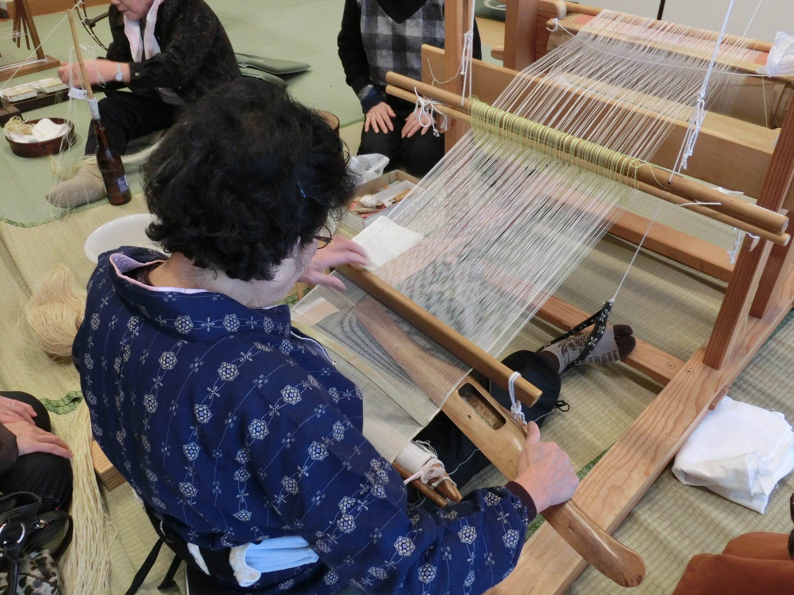 雪ざらしのほかに、ベテランの織姫さんによる「からむし織の実演」も行われます。