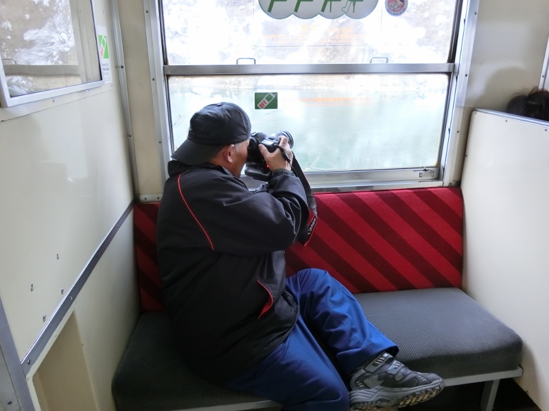 撮り鉄さんも参加で、車窓から見える風景をシャッターチャンスを狙ってカメラを構えています。