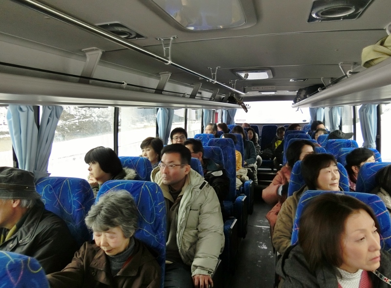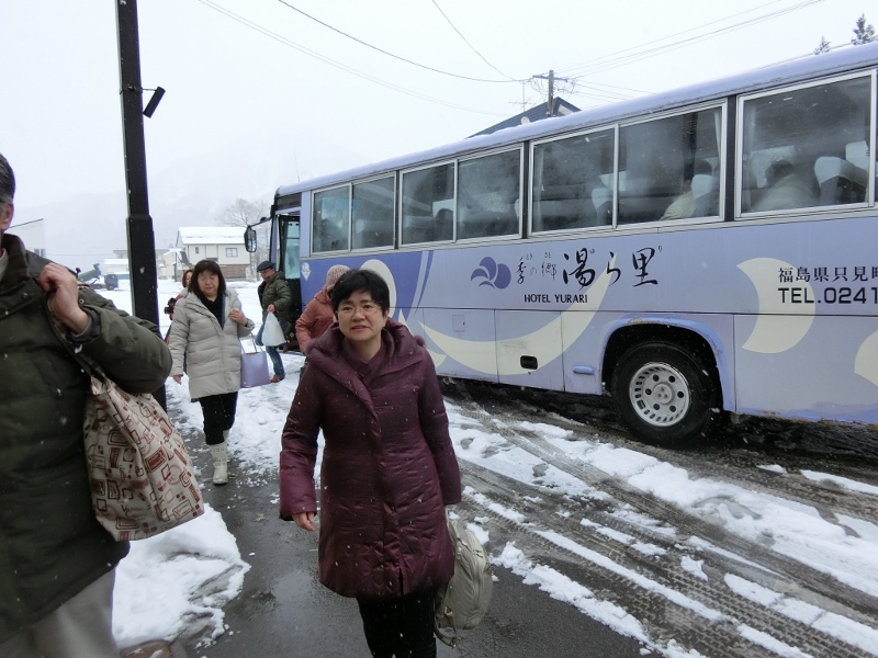 途中から小雪が降り始めて、車内では皆さん窓の外を眺めながら、「私の住んでいる地域は雪がめったに降らないから