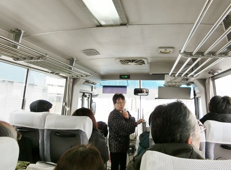 代表の渡部さんが2話語ってくれました。車内はうなずいたり、笑いがあったりと和やかな雰囲気の中、会津の方言を初めて聞いた方が多く、語り終わった後に渡部さんに分からない方言の意味を聞いている方もいらっしゃいました。
