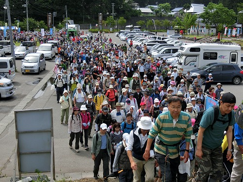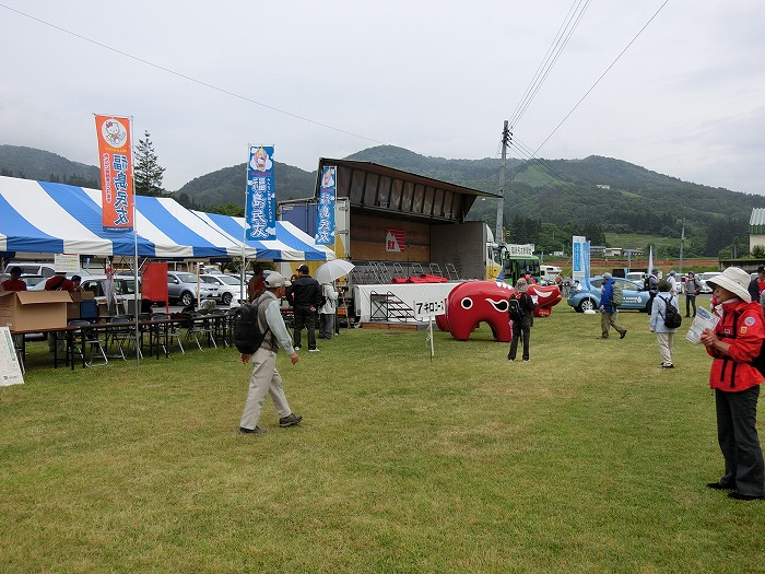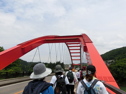例年より少し早い梅雨入りで雨が心配され、当日の朝も雨がすこーし降っていました。が、発着点となる”道の駅 会津柳津”に 徐々に人が集まると 「あれれ?なんか暑くなってきたぞ… ん?晴れてる!」 あっという間に晴れ間が見え、ウォーキングにはもってこいの天気にヾ(*・ω・)ノ゜+.☆゜+.゜ヾ(・ω・*)ノ 晴れ男・晴れ女が集結していたのでしょう。