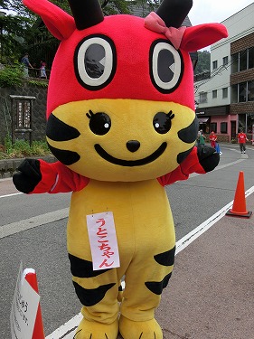 坂を下りきると、観光案内所に到着。うとちゃん・うとこちゃんも登場! こちらでは、あわまんじゅうの配布がありました♪ きゅうりやお水などのおもてなしも!! あわまんじゅうはいつ食べても美味しいですね(*^^*) |
