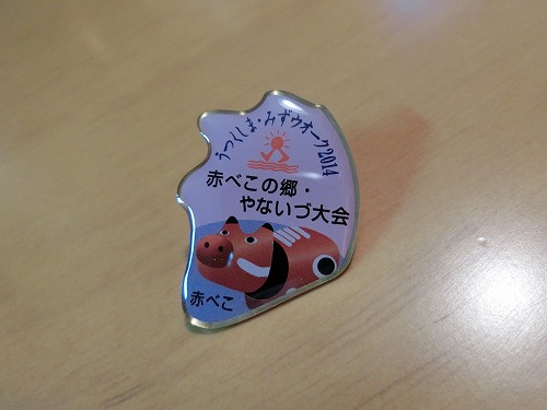 記念バッジはみずウォーク5大会に参加すると福島県の形になります。 さらに、5ヶ所大会すべてに参加すると踏破賞として記念品の贈呈もありますよ! 他大会については、福島民友新聞社 うつくしま・みずウォーク2014HPをご覧ください。