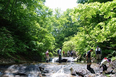 沢の中を歩く「恵みの森」 |