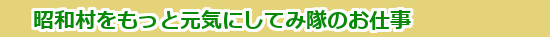 そこで、昭和村では「昭和村をもっと元気にしてみ隊(地域おこし協力隊)」を設置し、都市に住むみなさんから隊員を広く募集することになりました。観光交流をはじめ、農林水産業の振興、集落の生活環境維持支援など、地域おこしにかかわる業務に広く携わり、元気いっぱいの村づくり活動をしてみませんか。期間は採用決定から平成28年3月までで、最長3年を限度に更新する場合があります。