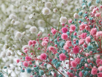 カスミソウって実は色とりどりなんですね、アルタイル、フォレスト、ベールスター、銀河といったステキなネーミングの品種があるそうです。昭和村は宿根カスミソウ栽培面積が夏秋期全国1位なんです!