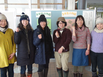下の写真(左)は、からむし織の織姫さんたち。昭和村に移住してからむし織と山村生活を体験してもらう制度で、県外から集まった女性たちです。織姫さんたちのインタビューを含む動画がありますのでぜひご覧ください。