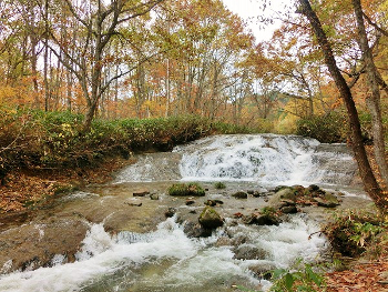 左は藤八(とうばち)の滝、右は矢ノ原湿原。紅葉の季節はもちろんのこと、緑濃い季節もその美しさは見事です。