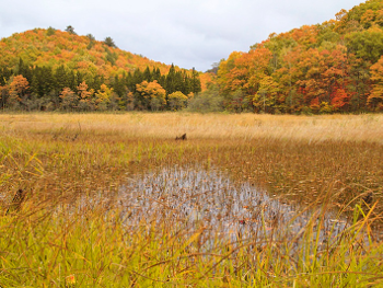 昭和村と南会津町にまたがる高層湿原「駒止(こまど)湿原」は国の天然記念物に指定されています。