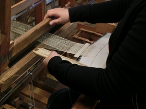 写真の糸と生地おわかりになりますか?昭和村の伝統工芸「からむし織」です。からむしはイラクサ科の多年草で苧麻(ちょま)とも呼ばれます。本州では唯一、上布原料の産地として知られています。