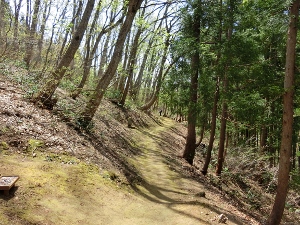 森の中を歩いて、観音様一体一体に手を合わせます。最初は勾配がきつかったですが、右の写真のようになだらかな道に出ます。