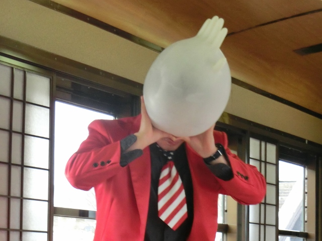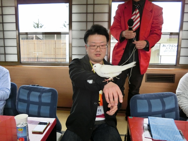 トランプマジックや体を張ったゴム手割り、さらにはサプライズゲストの鳩の『クーちゃん』登場で