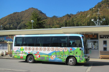 会津宮下駅⇔大林ふるさとの山間で無料送迎バスが運行されます。