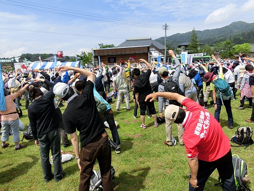 左は準備運動の様子です。ウオーキングだけではなくおもてなしや抽選会、ステージイベントもあり、みなさん楽しんでいたようです。