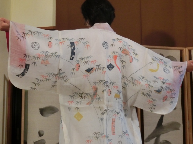 実物の「七夕文様帷子再現作品」は向こう側が透けて見えるようなとても美しい着物でした。