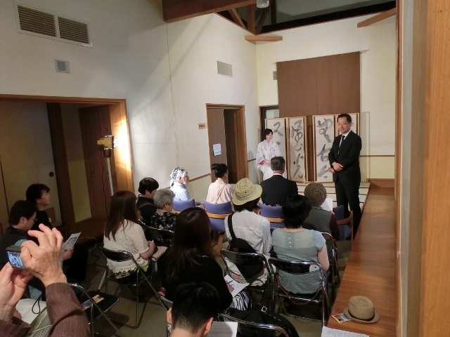 江戸時代後期の着物、七夕文様帷子(たなばたもんようかたびら)を再現した織物作家の後藤順子さんと友禅作家の高橋裕博さんが作品にまつわるお話をしてくださるということで、始まる前からたくさんのお客様で賑わっています。