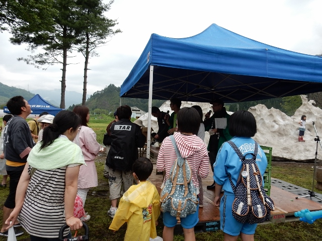 出店もかなり賑わっています。雪むろで貯蔵したトマトジュースの振る舞いもありました。冷たくておいしかったです!
