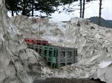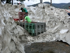 2月に行われた「只見ふるさと雪まつり」で使用した雪を利用して雪むろを作り、その中に酒、米、そば、野菜などを3か月貯蔵したものです。