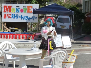 イントロクイズ、ピエロのまーみんのパフォーマンス。子供たちは何が出来上がるのか楽しみにしながら“がんばれー”と、まーみんに声援を送っていました。