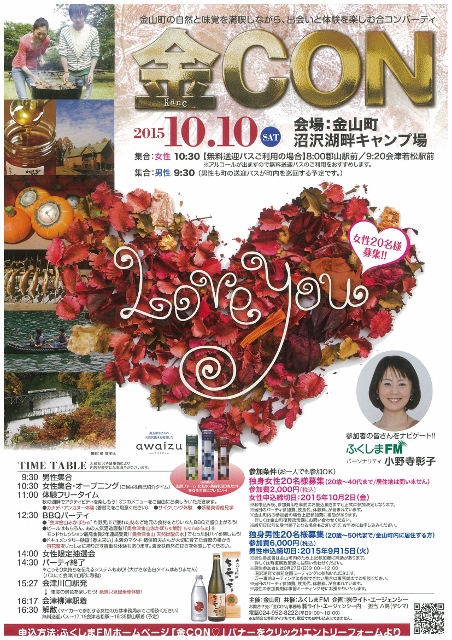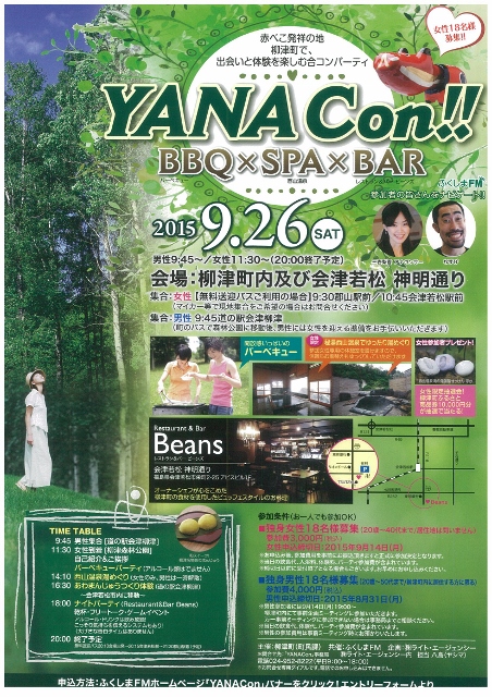 2015年9月26日(土)、柳津町で街コン「YANA Con!!」が開催されます。