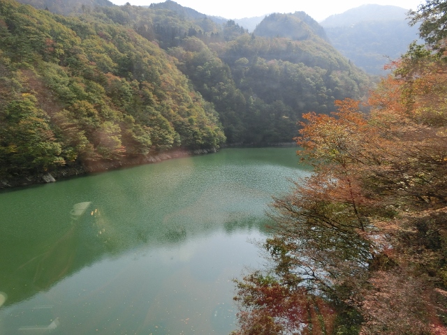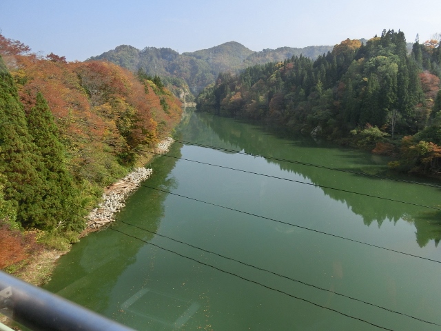 一年を通して車窓からの絶景が楽しめる只見線ですが、特に紅葉の時期は赤や黄色に染まった山々が深い緑の只見川に映えて、とても見応えがある季節です。