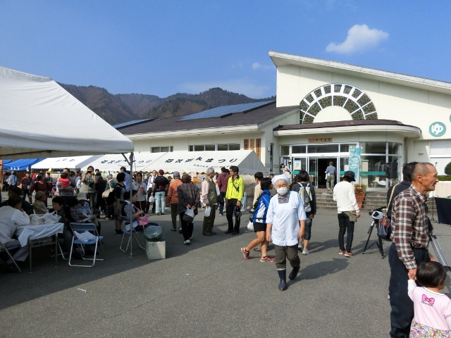 2015年10月25日(日) 道の駅からむし織の里 しょうわにて『第17回 昭和村 秋味まつり』 が開催されスタッフも行ってきました。当日は強風で肌寒く、時折小雨が降る天候でしたが、会場内はにぎわっていました。