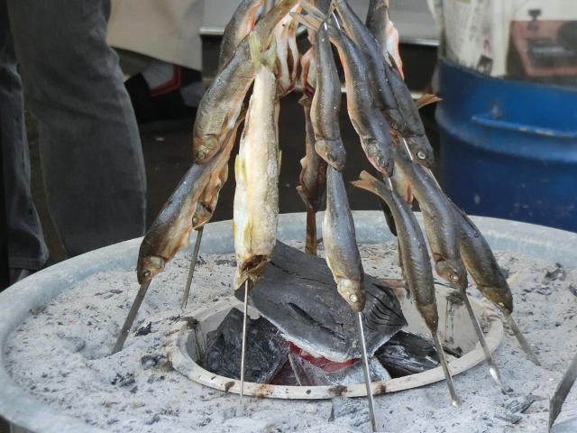 野尻川で獲れた天然鮎の塩焼きです。スタッフもカリカリに焼いたものを1匹いただきました。よく焼いてあるので頭から豪快に丸かじりできます!香ばしくて身が詰まっていてとてもおいしかったです。