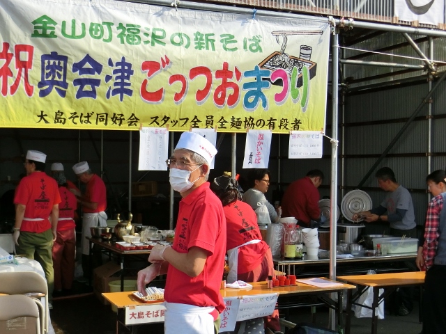 特に開催中は新そばの季節なので、奥会津のそば打ち名人による新そばの出店が沢山出ています。今の時期なのであたたかいそばと冷たい蕎麦の二種類を販売している出店も多く、どれを食べようか迷ってしまいました。