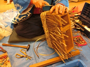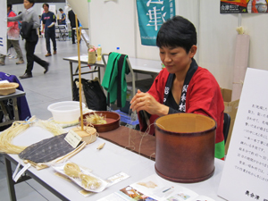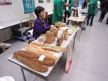会場内では工人さんによる編み組細工の実演が披露されていました。