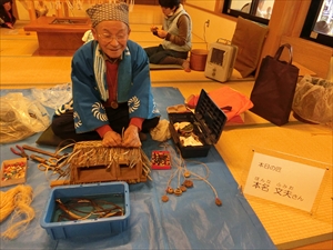 また、縄ないや山ブドの皮を材料としたストラップ作り体験もあり、多くの方々が体験していました。