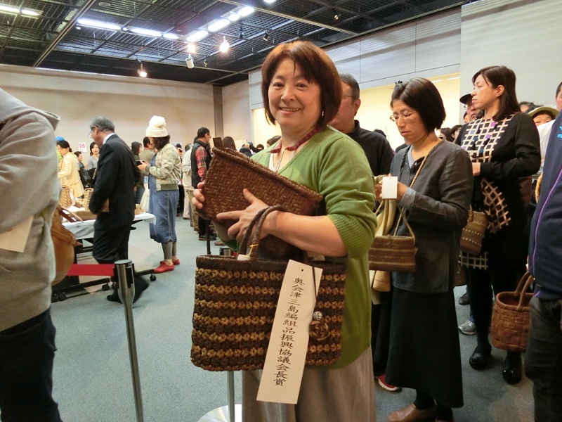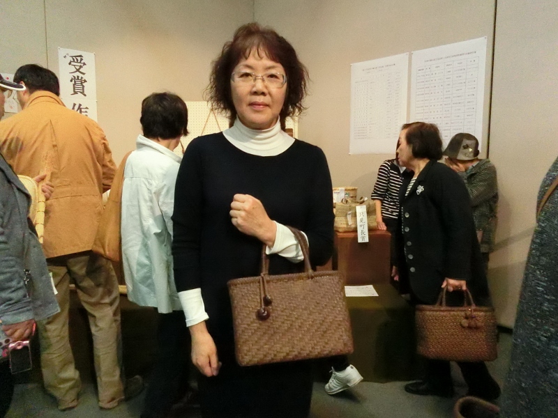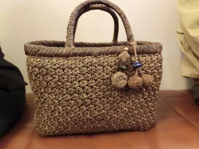 斎藤さんもご自身で編み組した素敵な手提げバッグをご愛用でした。(写真左)