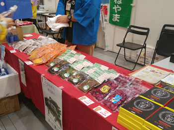 特産品販売ブースには、奥会津地域から柳津町、三島町、金山町が出店。人気の商品がずらりと並びます。