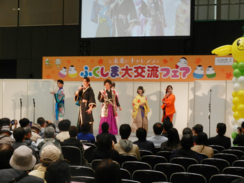 メインステージでは、おなじみ「会津磐梯山」などの民謡披露や、福が満開ふくしま隊によるPRステージ、フラガールの特別公演、福島県知事とサッカー元日本代表選手、サッカー日本代表帯同シェフのスペシャルトークショーなど、バラエティ豊かな催しで福島の魅力を存分にPR。