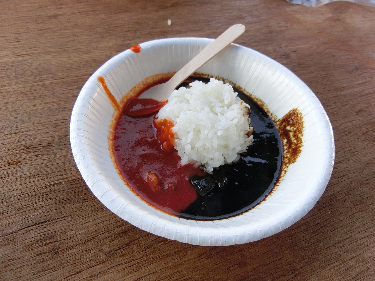 赤カレーは辛口、黒カレーはゴマの味がする甘口!!