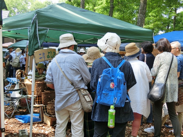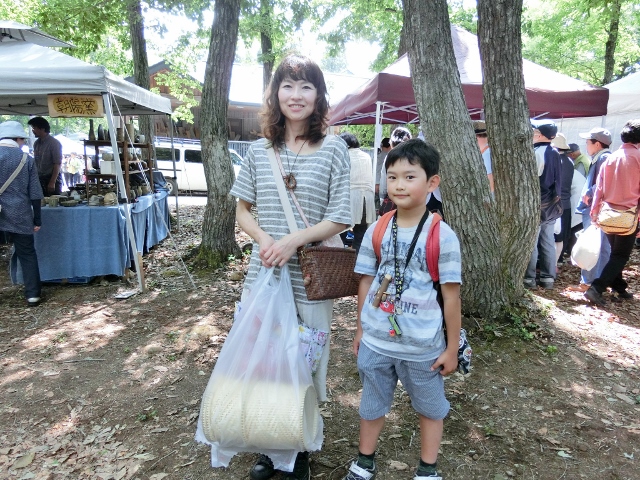 ・どちらからいらっしゃいましたか? 栃木県から旅行がてら3時半に出て来ました。 ・工人まつりは何回目ですか? 去年、友達の紹介で来てハマってしまいました。 ・今日は何を購入されたのですか? お目当ては市場籠。魚屋さんが魚を入れる 籠でコレが欲しかったんです。他にも山ブド ウのバッグと携帯ケースを購入しました。 (早速携帯ケースをお使いになってました!)