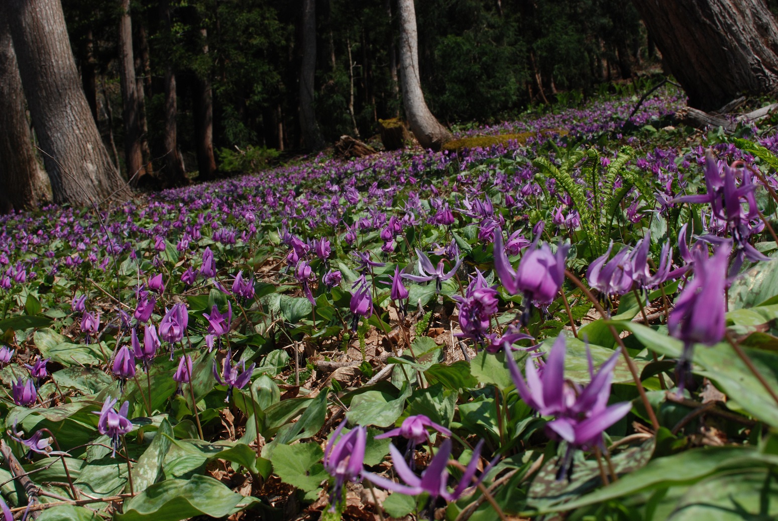 三島町の大林ふるさとの山にはカタクリの群生地があります。