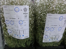 栽培農家さんで規格マニュアルがあり、それにより箱に品種・等級・階級・本数・氏名を記入します。