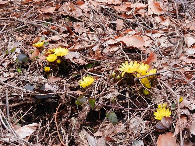 右の写真の福寿草は3月末ごろから様々な場所で見られます。春の訪れを教えてくれる花です。