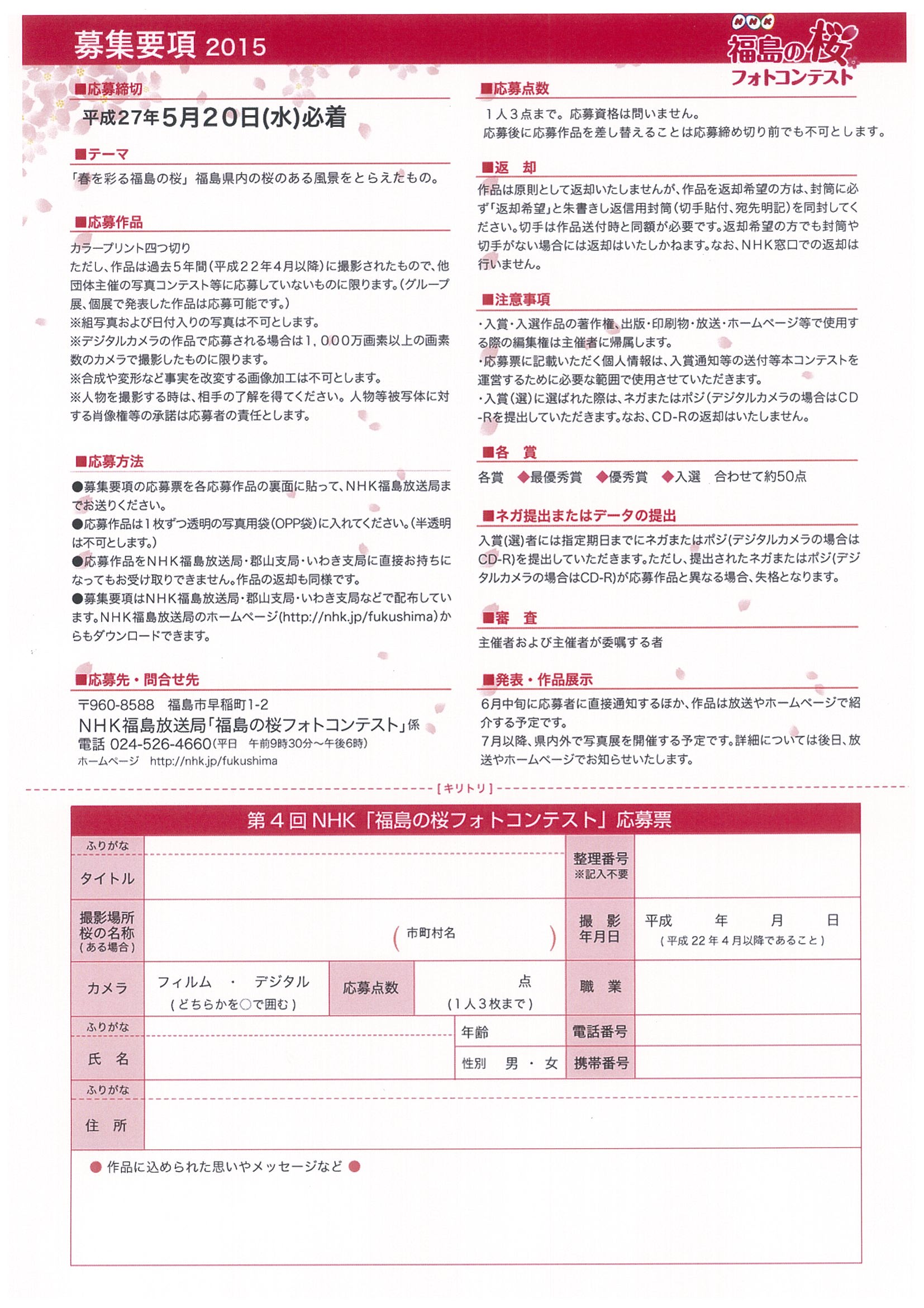 15/04/22 【お知らせ】福島の桜フォトコンテスト作品募集中!!